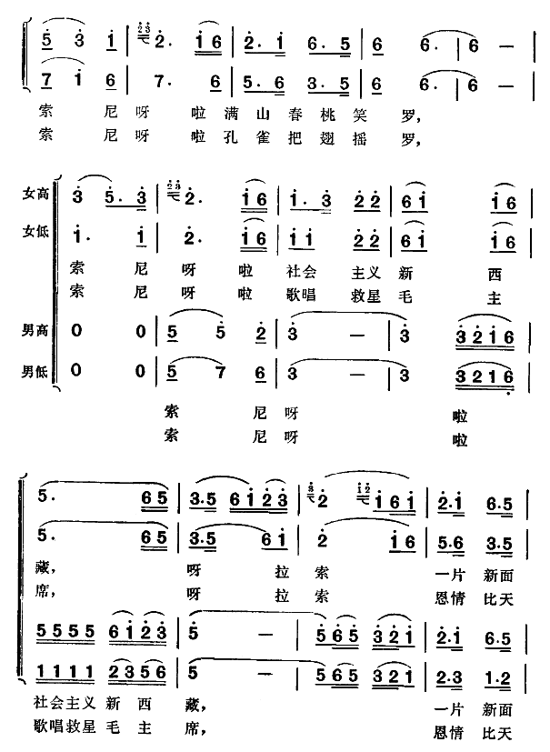 - [歌谱] 藏族弦子