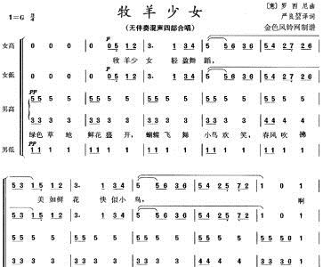 - [歌谱] 牧羊少女 无伴奏四声部合唱