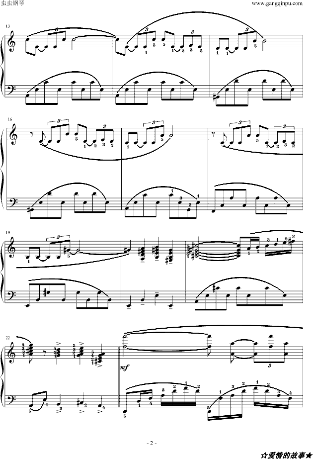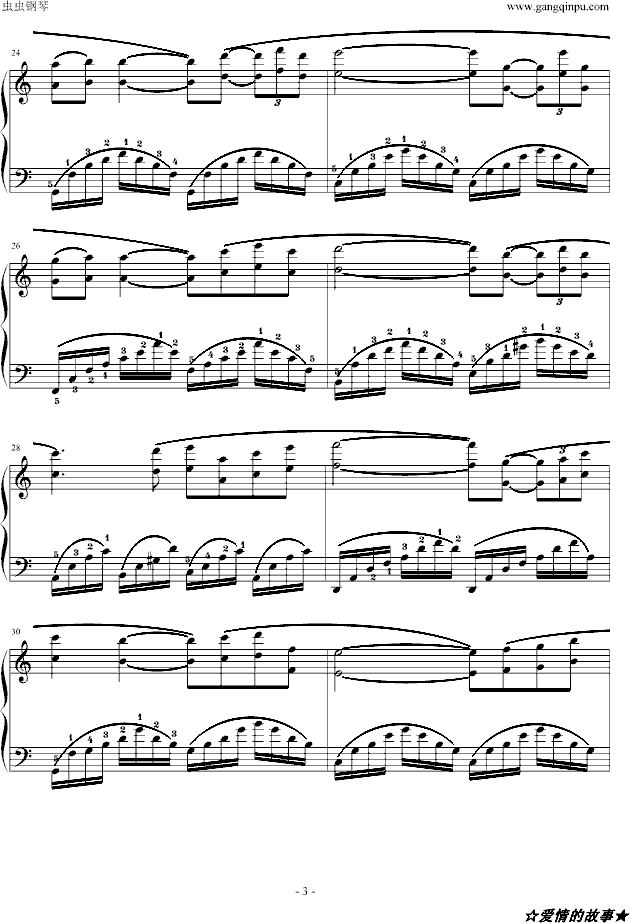 - [钢琴谱,歌谱] 爱情的故事 带指法