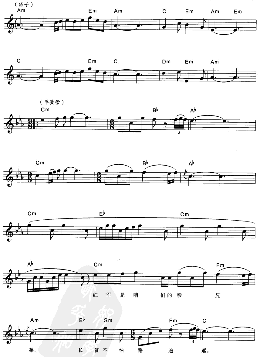 - [巴乌谱,单簧管谱,葫芦丝谱,手风琴谱] 情深意长 东方红 选曲