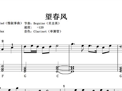 - [笛子谱,电子琴谱,钢琴谱,歌谱,萨克斯谱,小提琴谱,长笛谱] 望春风