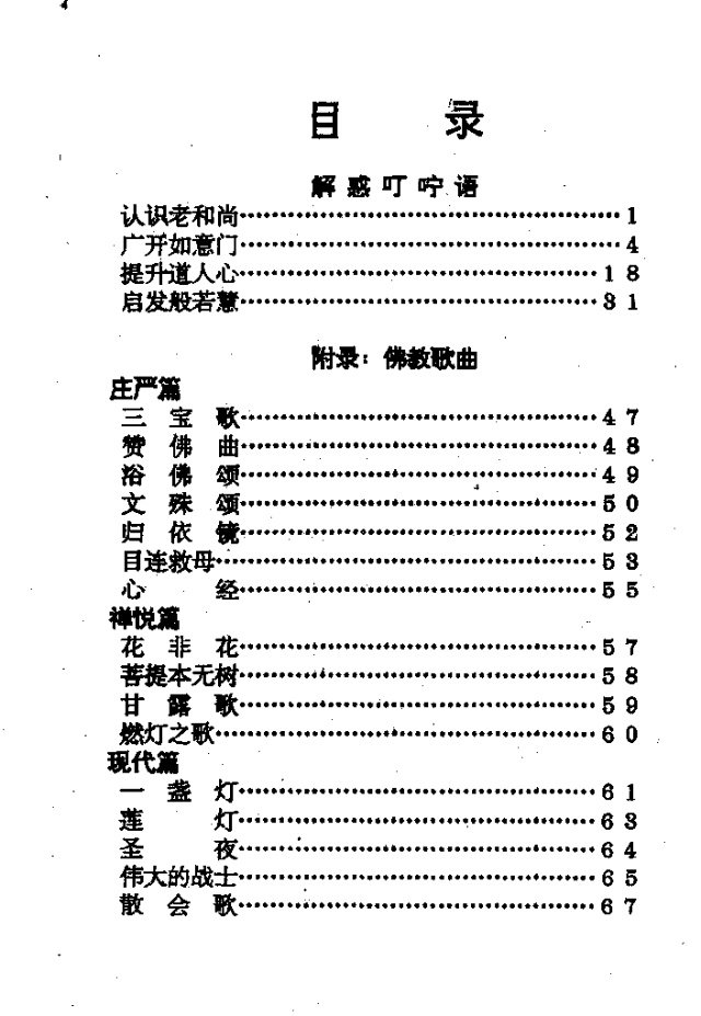 > 解惑叮咛语 上妙下莲老和尚开示问答 附录 佛教歌曲目录1 47