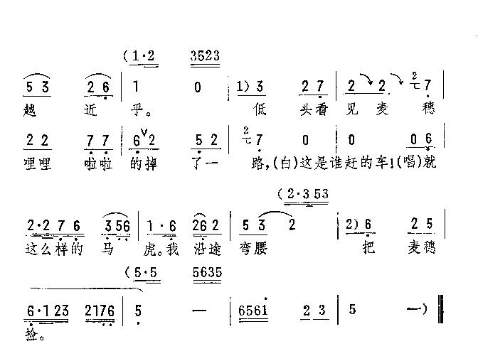 - [京剧谱,评剧谱,越剧谱] 评剧 我沿途弯腰把麦穗捡