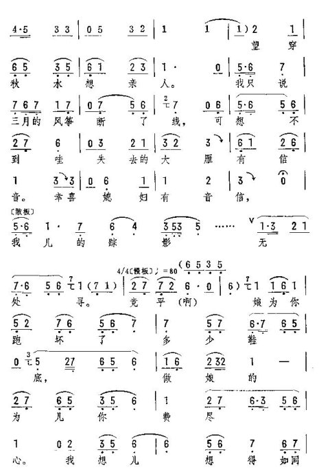 - [京剧谱,评剧谱,越剧谱] 评剧 一别五月无音信