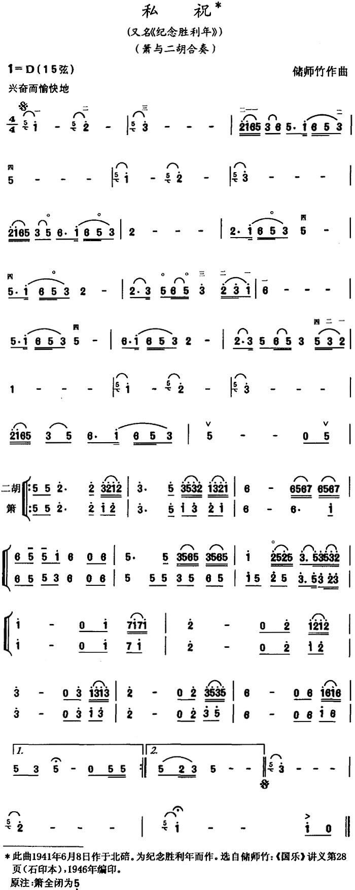 私祝 又名 纪念胜利年 箫与二胡合奏
