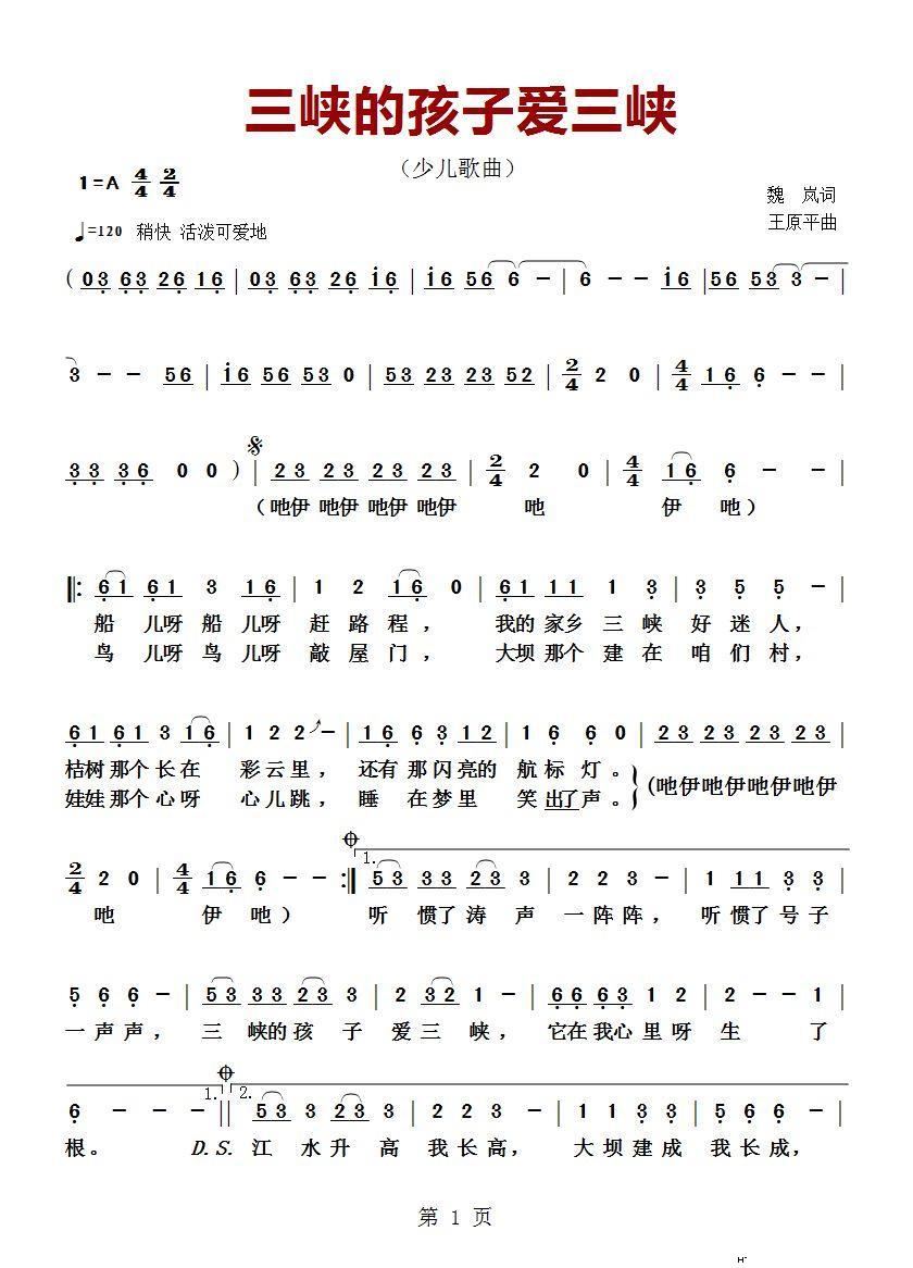 > 三峡的孩子爱三峡