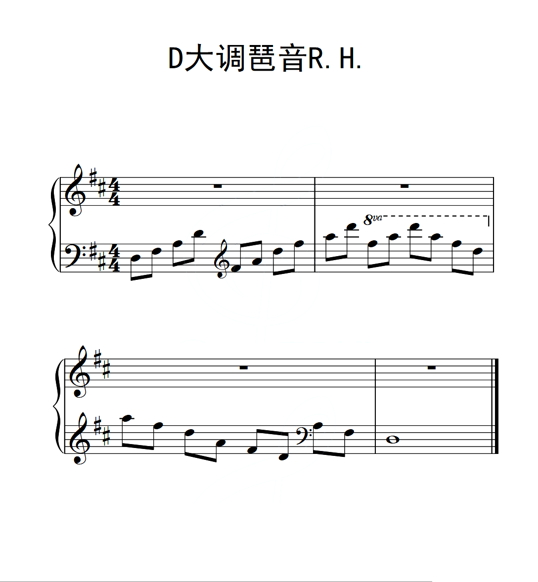> 第三级 D大调琶音R H 中国音乐学院钢琴考级作品1 6级