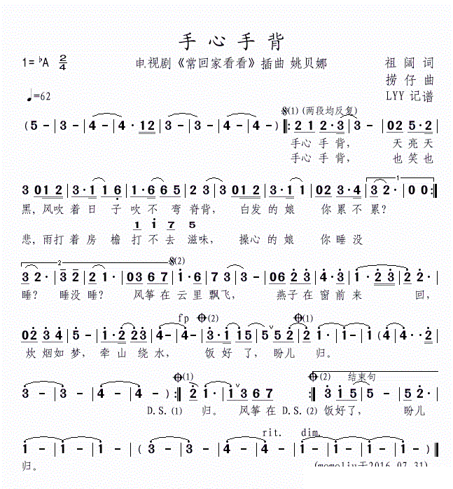 手心手背 电视剧 常回家看看 插曲