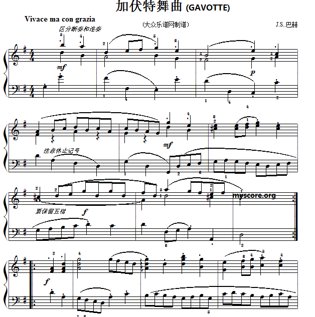 巴赫初级钢琴曲之二十一 加伏特舞曲 附演奏提示