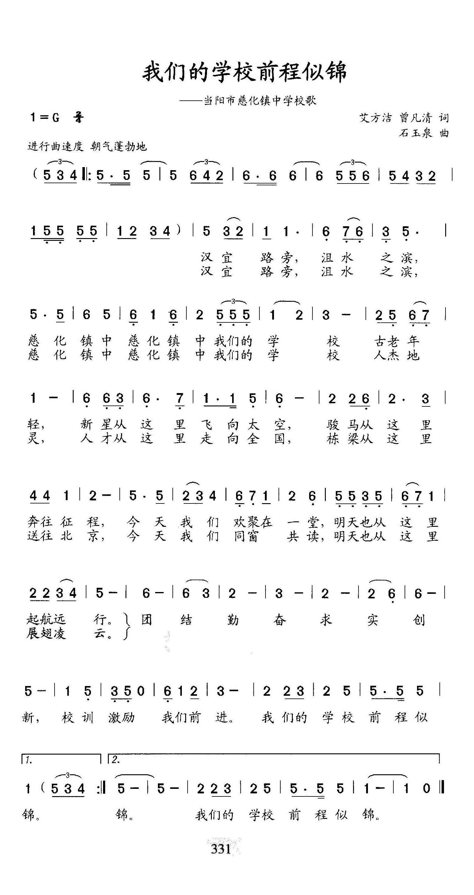 > 我们的学校前程似锦 当阳市慈化镇中学校歌