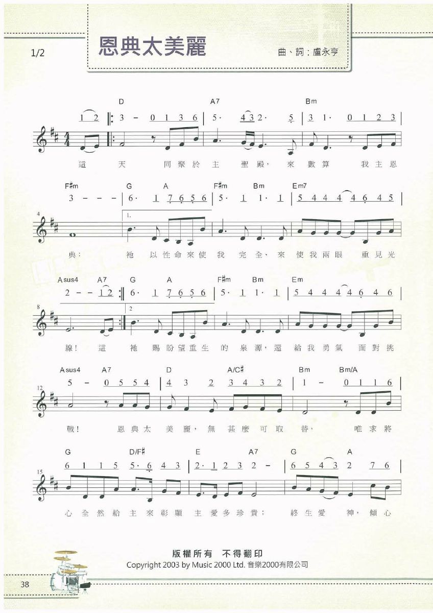 > 恩典太美丽 官方谱