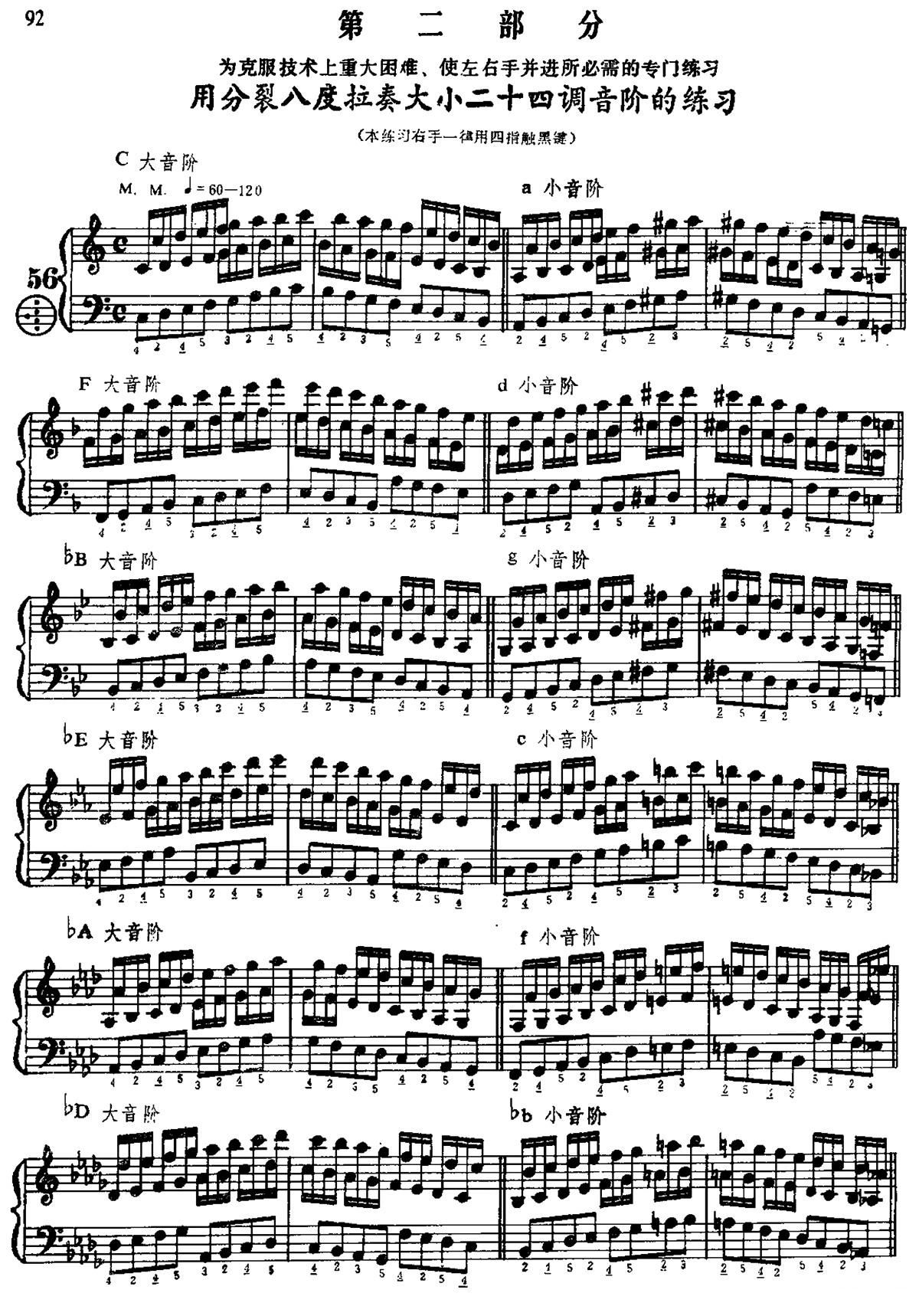 > 手风琴手指练习 第二部分 用分裂八度演奏大小二十四调的音阶练习