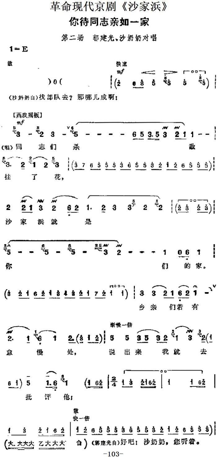 > 革命现代京剧 沙家浜 主要唱段 你待同志亲如一家 第二场 郭建光 沙奶奶对唱