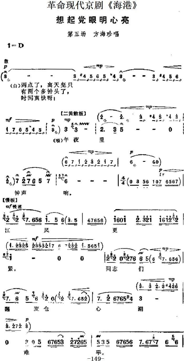 > 革命现代京剧 海港 主要唱段 想起党眼明心亮 第五场 方海珍唱段