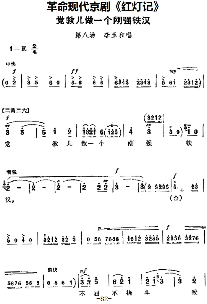 > 革命现代京剧 红灯记 主要唱段 党教儿做一个刚强铁汉 第八场 李玉和唱段