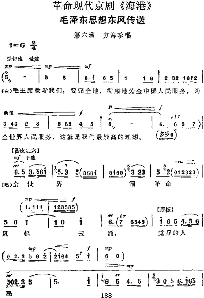 革命现代京剧 海港 主要唱段 毛泽东思想东风传送 第六场 方海珍唱段