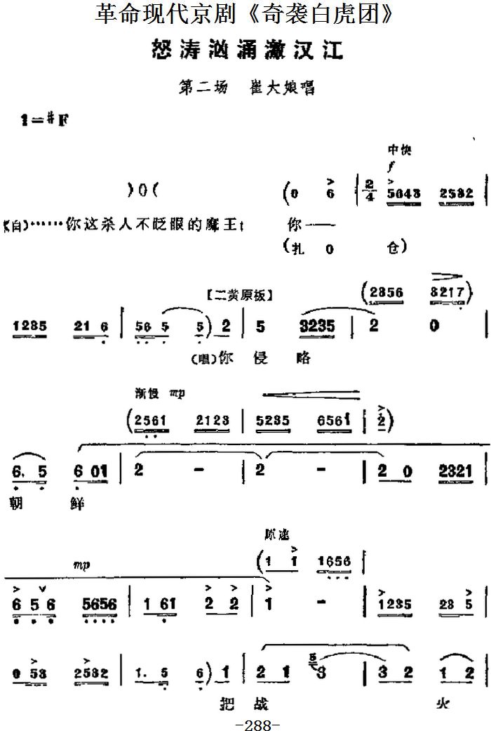 > 革命现代京剧 奇袭白虎团 主要唱段 怒涛汹涌激汉江 第二场 崔大娘唱段