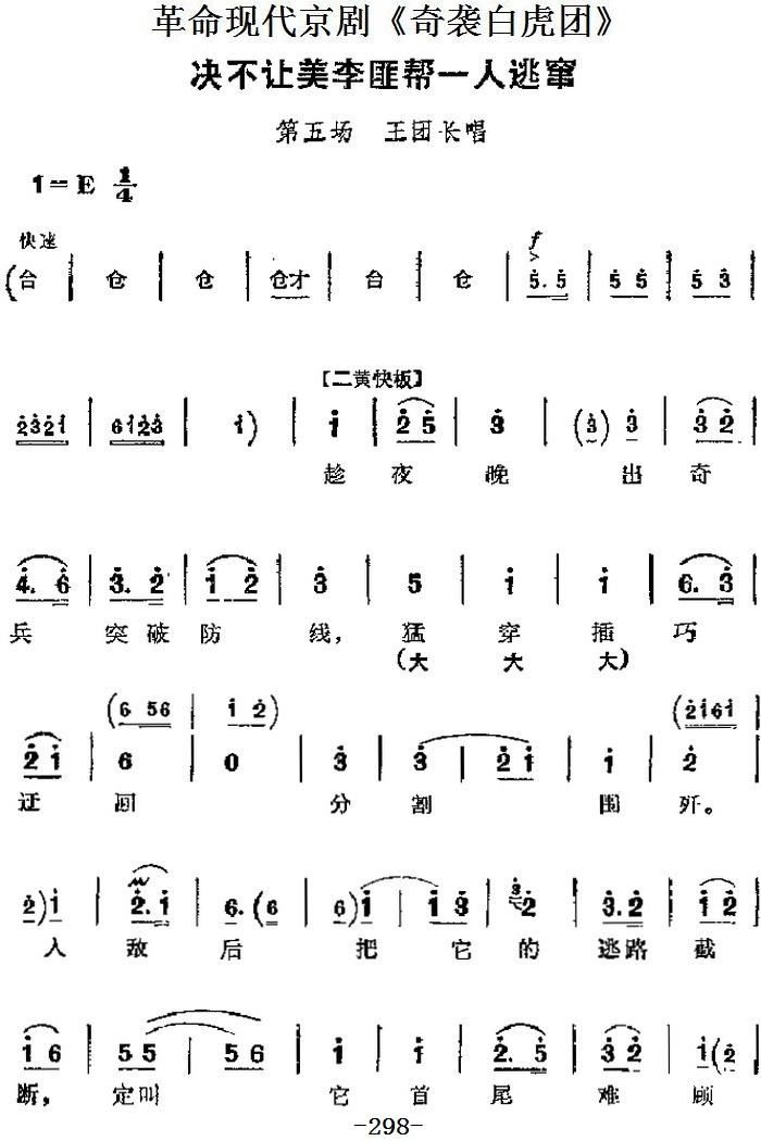 革命现代京剧 奇袭白虎团 主要唱段 决不让美李匪帮一人逃窜 第五场 王团长唱段