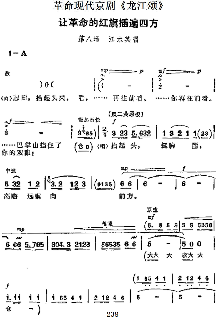 > 革命现代京剧 龙江颂 主要唱段 让革命的红旗插遍四方 第八场 江水英唱段