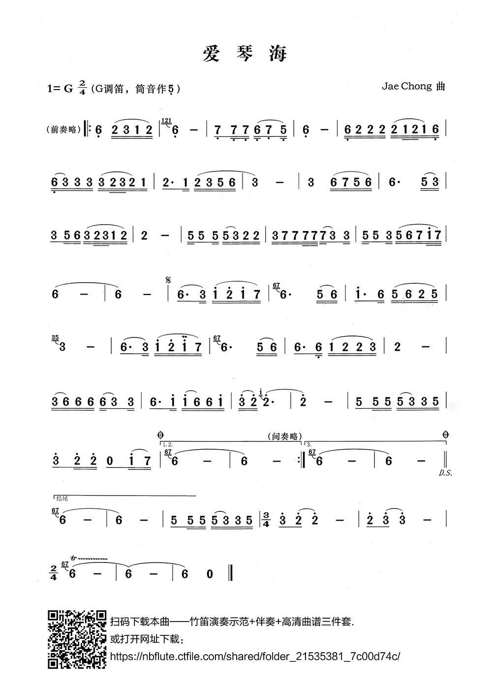 > 爱情海 笛子演奏谱