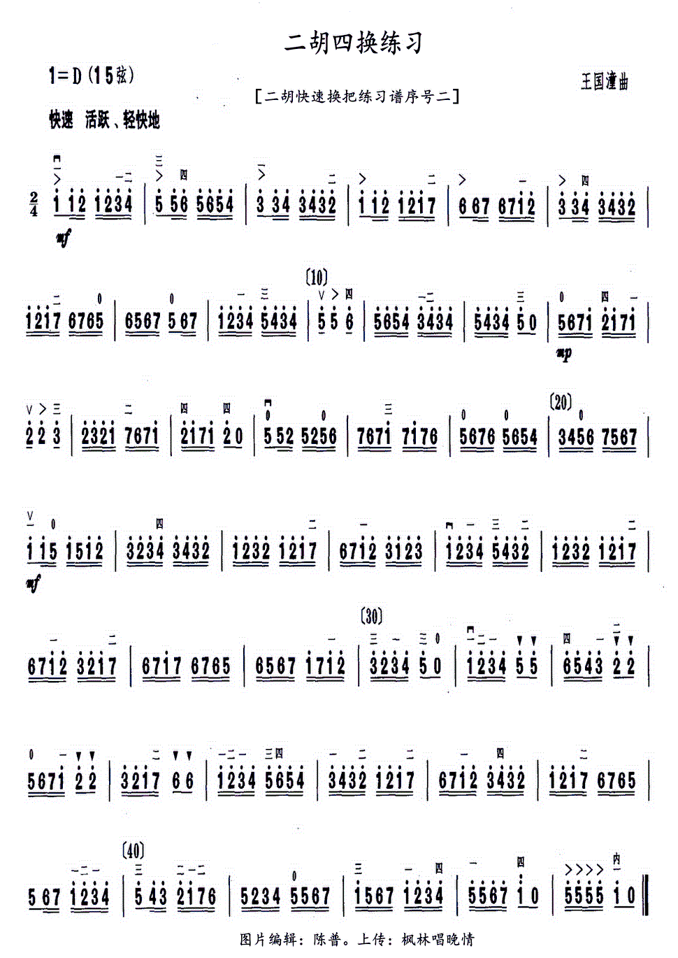 > 二胡四换练习 二胡快速换把练习谱序号二