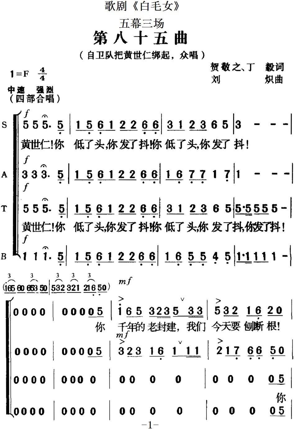 > 歌剧 白毛女 全剧之第八十五曲 五幕三场