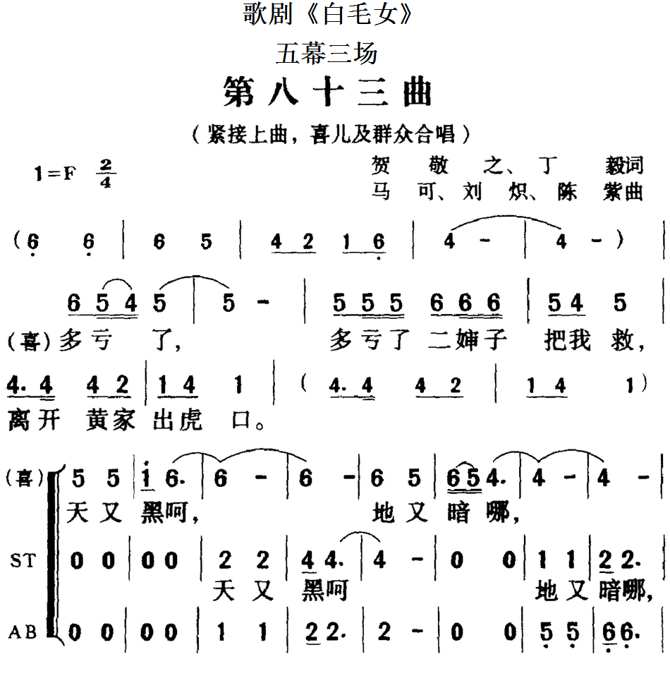 > 歌剧 白毛女 全剧之第八十三曲 五幕三场