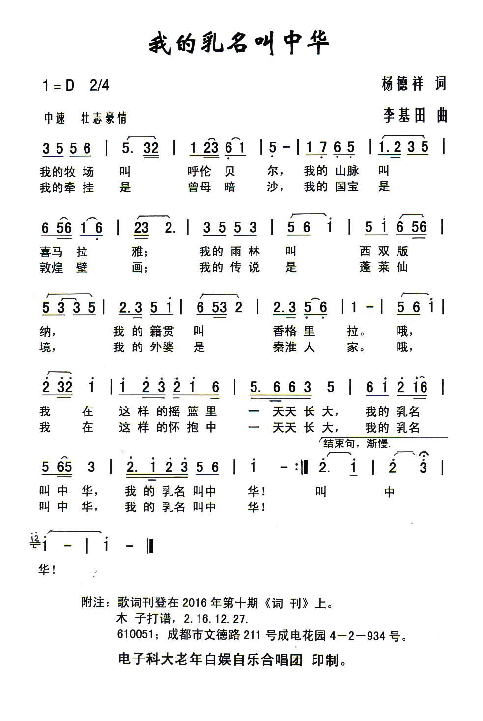 > 我的乳名叫中华