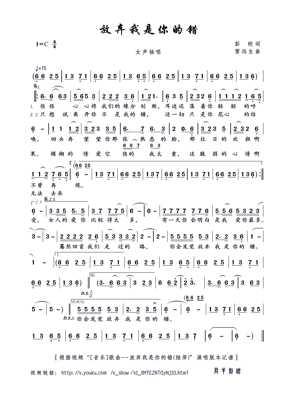> 放弃我是你的错 视频 音乐 放弃我是你的错 陆萍 本