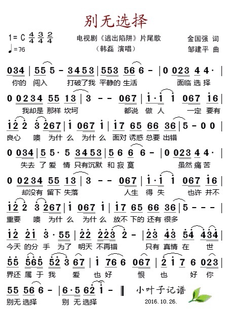 别无选择 电视剧 逃出陷井 片尾歌
