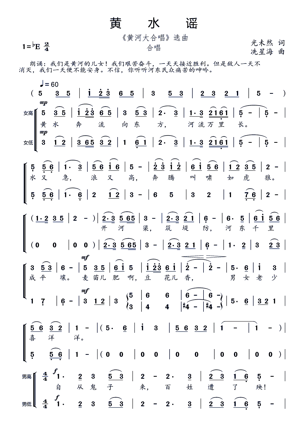 黄水谣 黄河大合唱 选曲