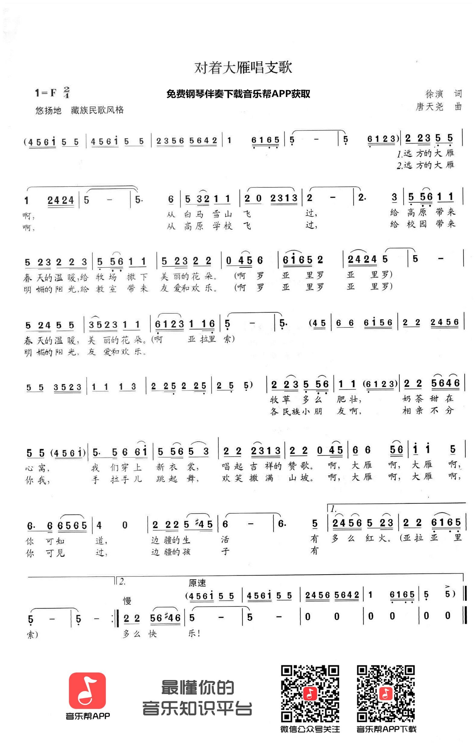 > 对着大雁唱支歌 七级