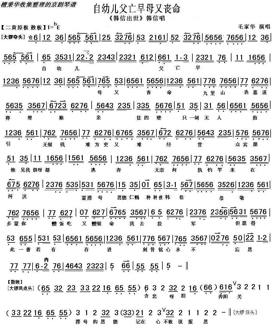 自幼儿父亡早母又丧命 韩信出世 韩信唱段 琴谱