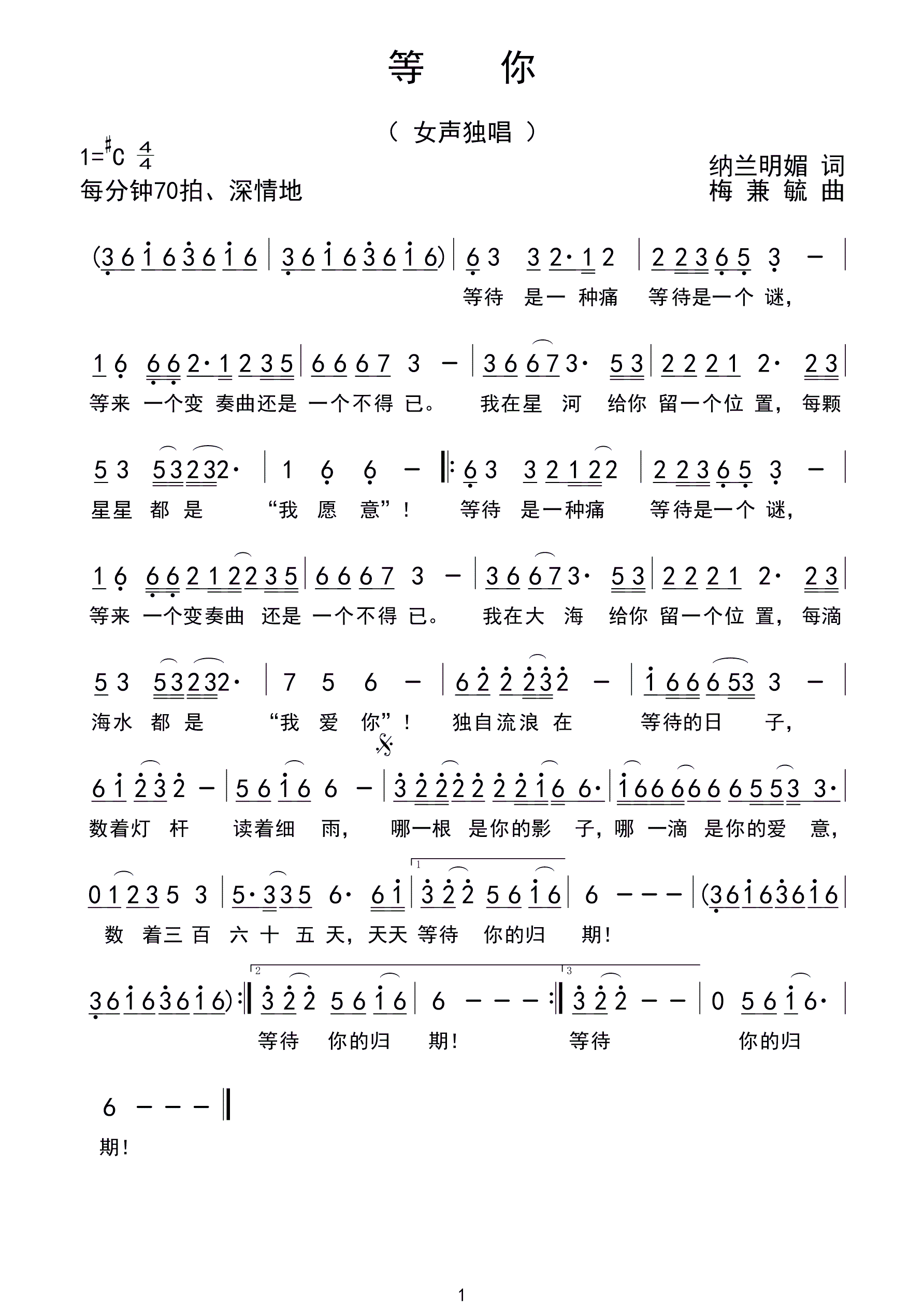 - [歌谱] 等你
