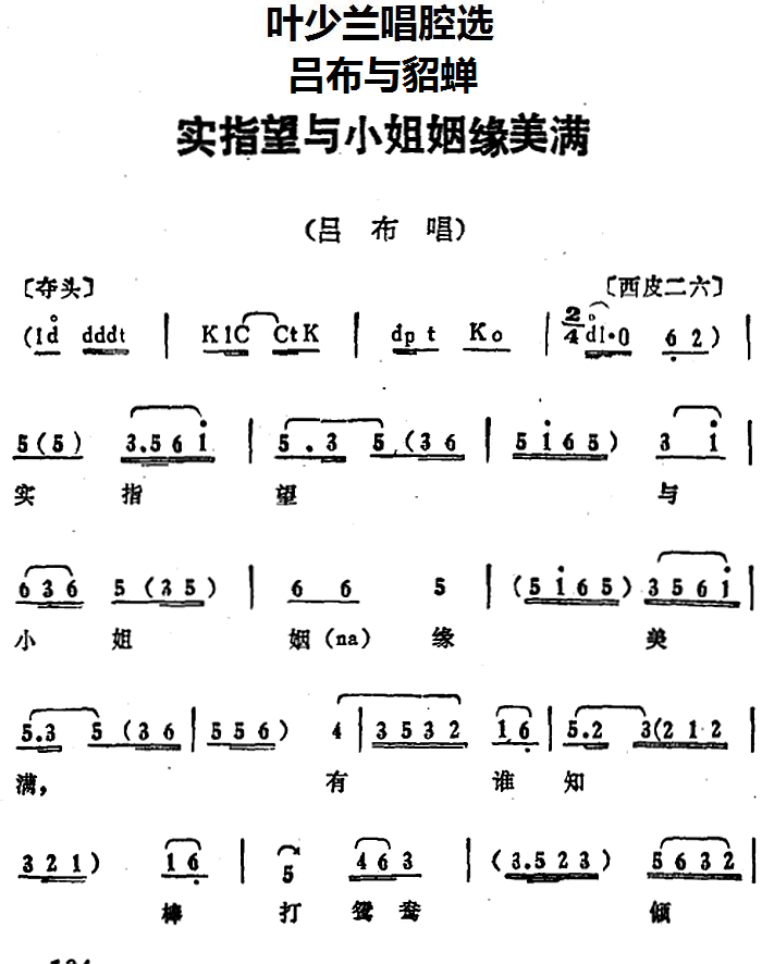 叶少兰唱腔选 实指望与小姐姻缘美满 吕布与貂蝉 吕布唱段