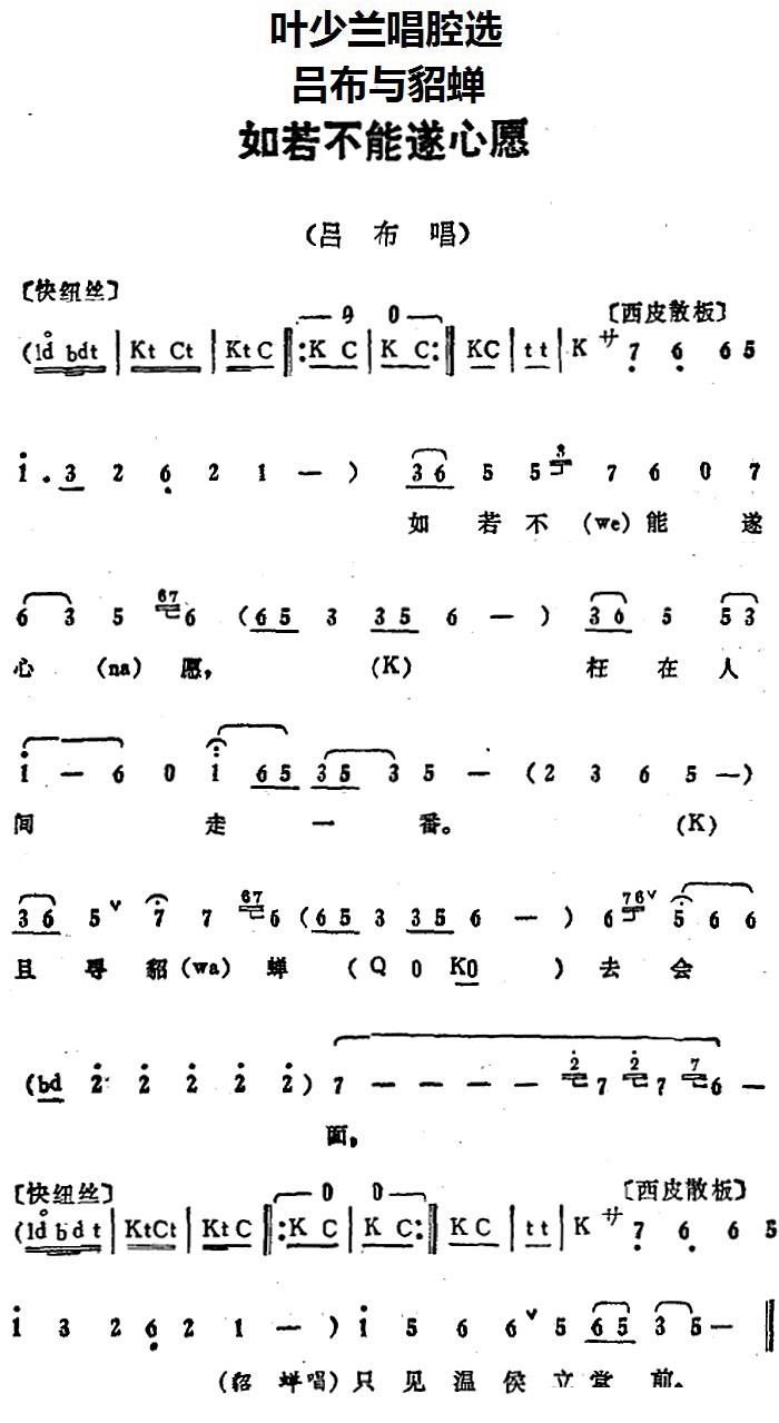 叶少兰唱腔选 如若不能遂心愿 吕布与貂蝉 吕布唱段