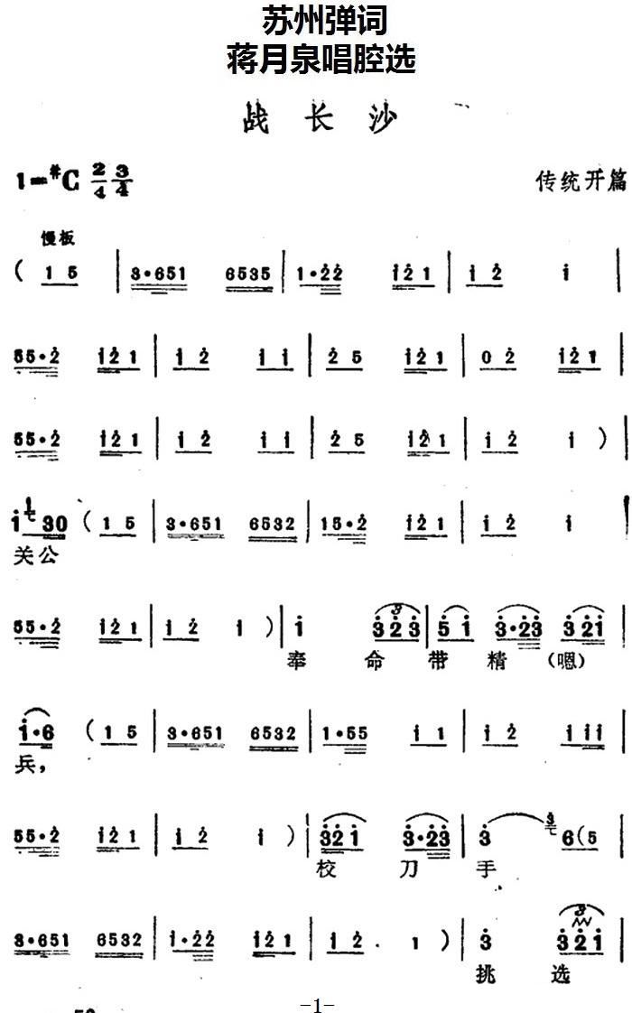- [歌谱] 评弹曲调 蒋调 战长沙开篇