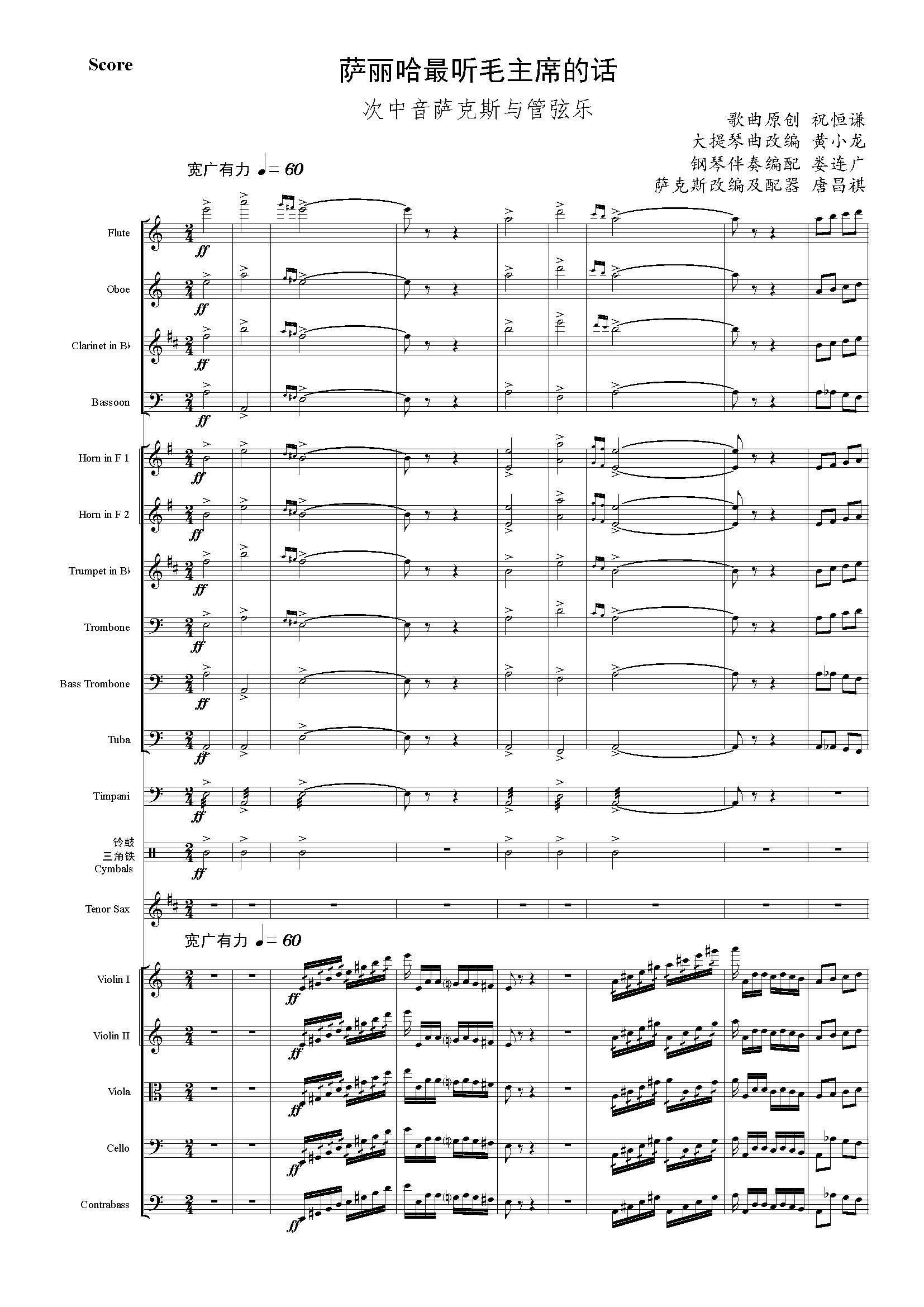 > 萨丽哈最听毛主席的话 次中音萨克斯与管弦乐
