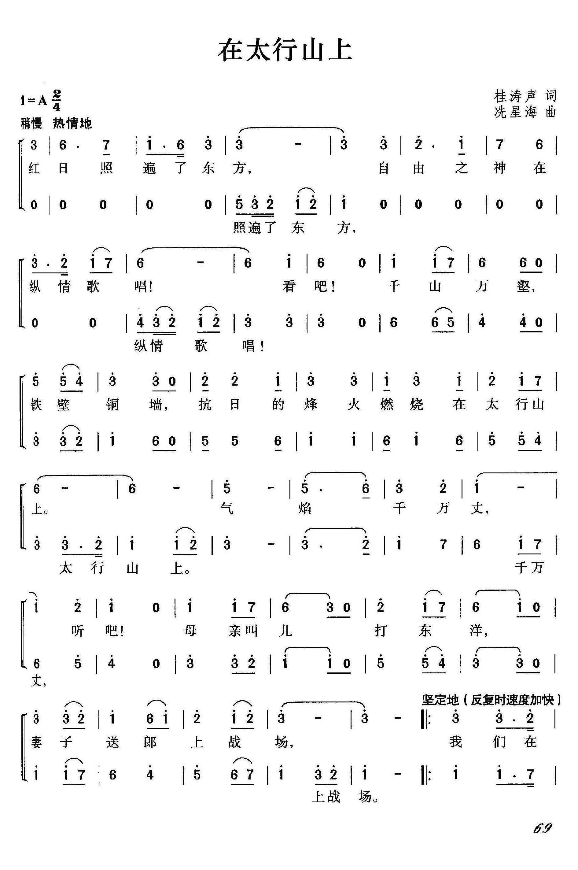 - [歌谱] 在太行山上 合唱
