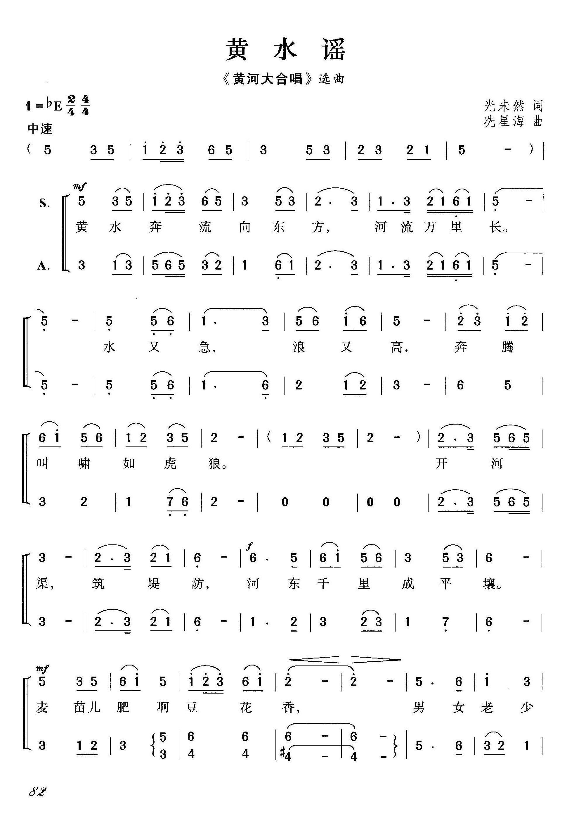 - [歌谱] 黄水谣 黄河大合唱 选曲