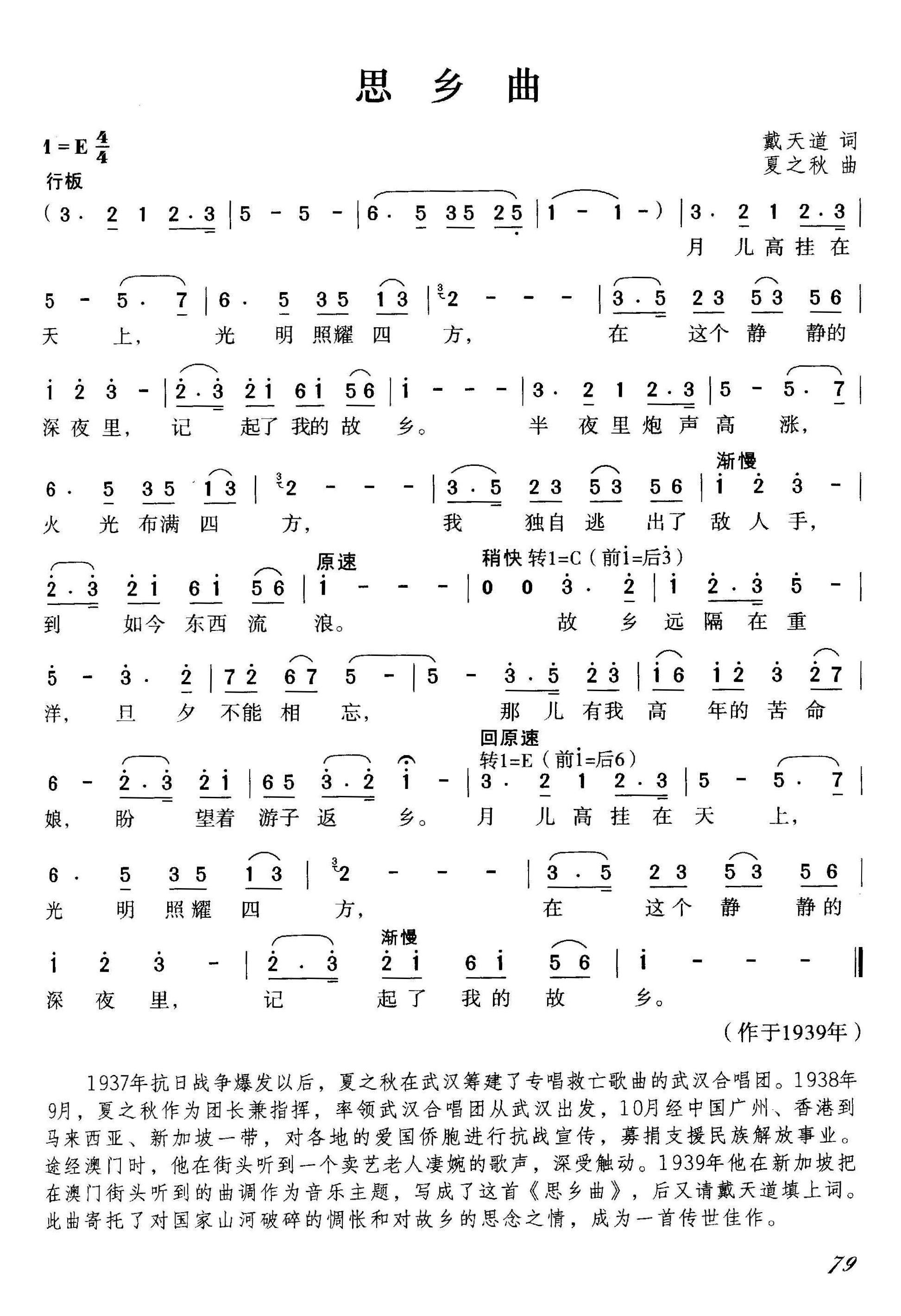 - [歌谱,小提琴谱] 马思聪 思乡曲