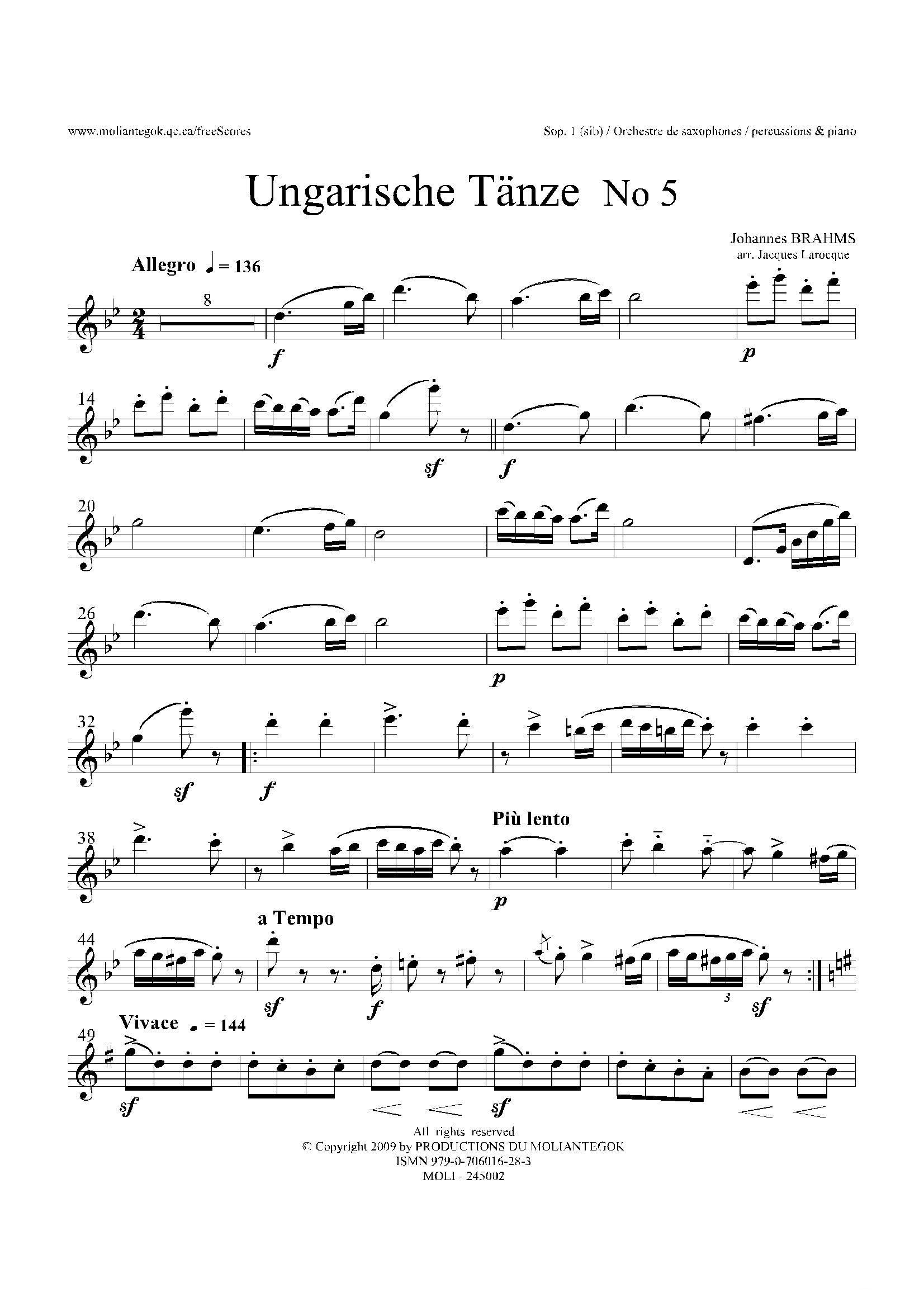 Ungarische Tnze No 5 十五重奏第一二三中音萨克斯