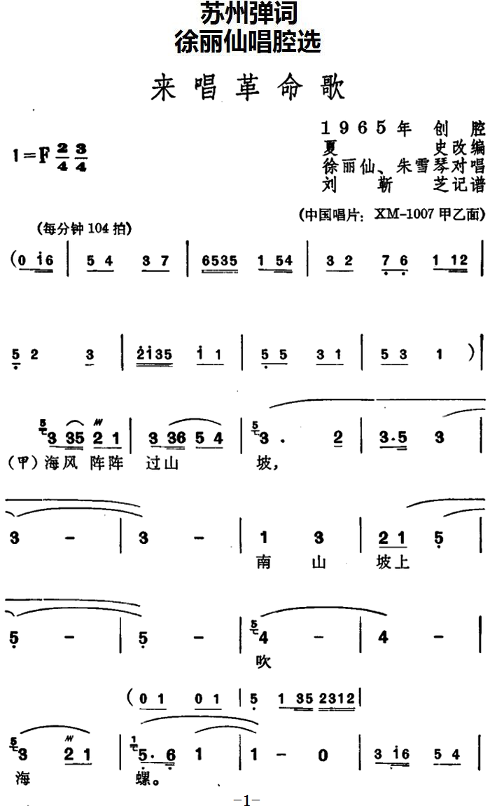 > 徐丽仙唱腔选 来唱革命歌