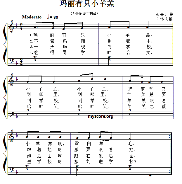 玛丽有只小羊羔 美