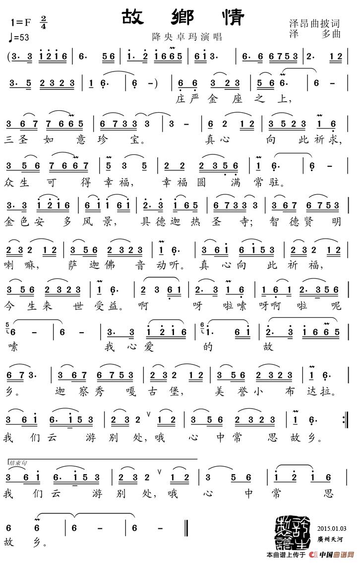 - [歌谱] 故乡情