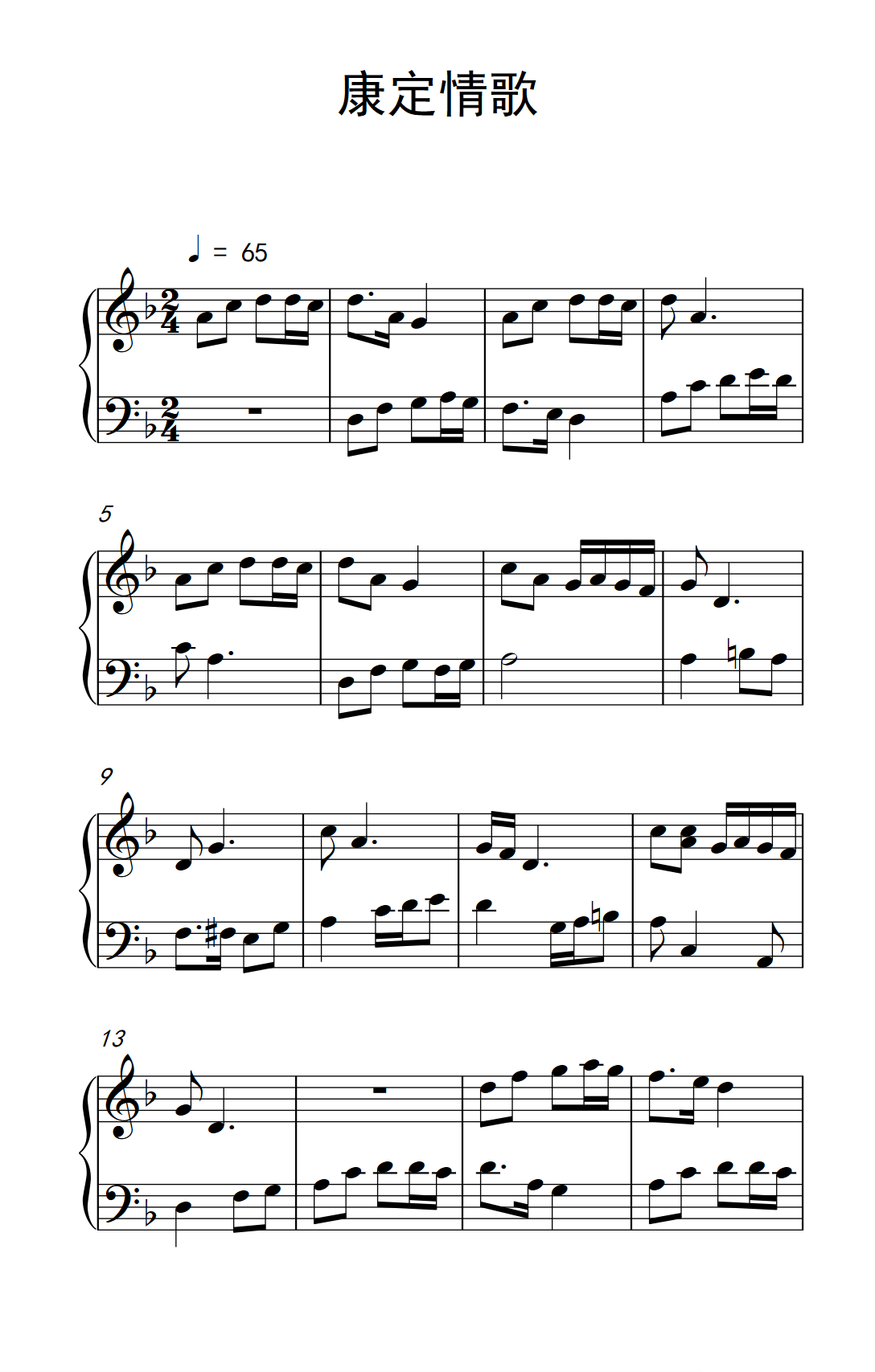 - [钢琴谱] 康定情歌