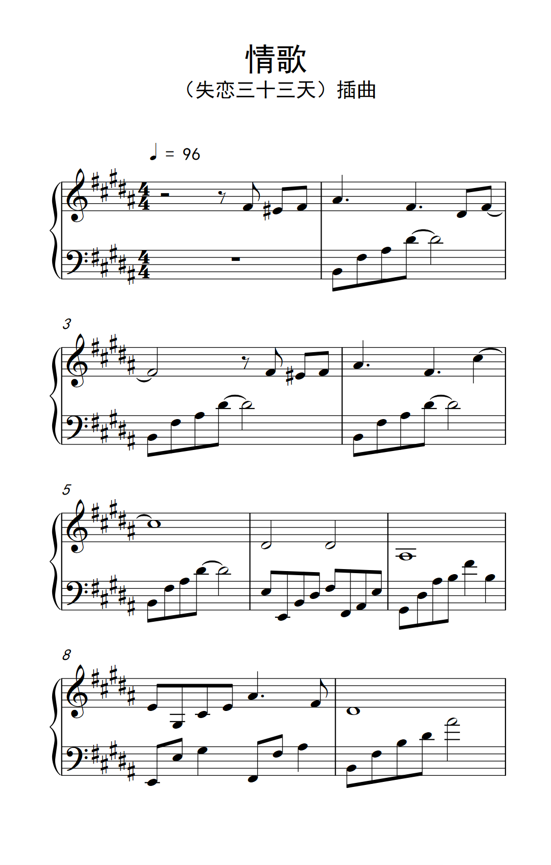 情歌 钢琴弹唱谱 失恋三十三天 插曲