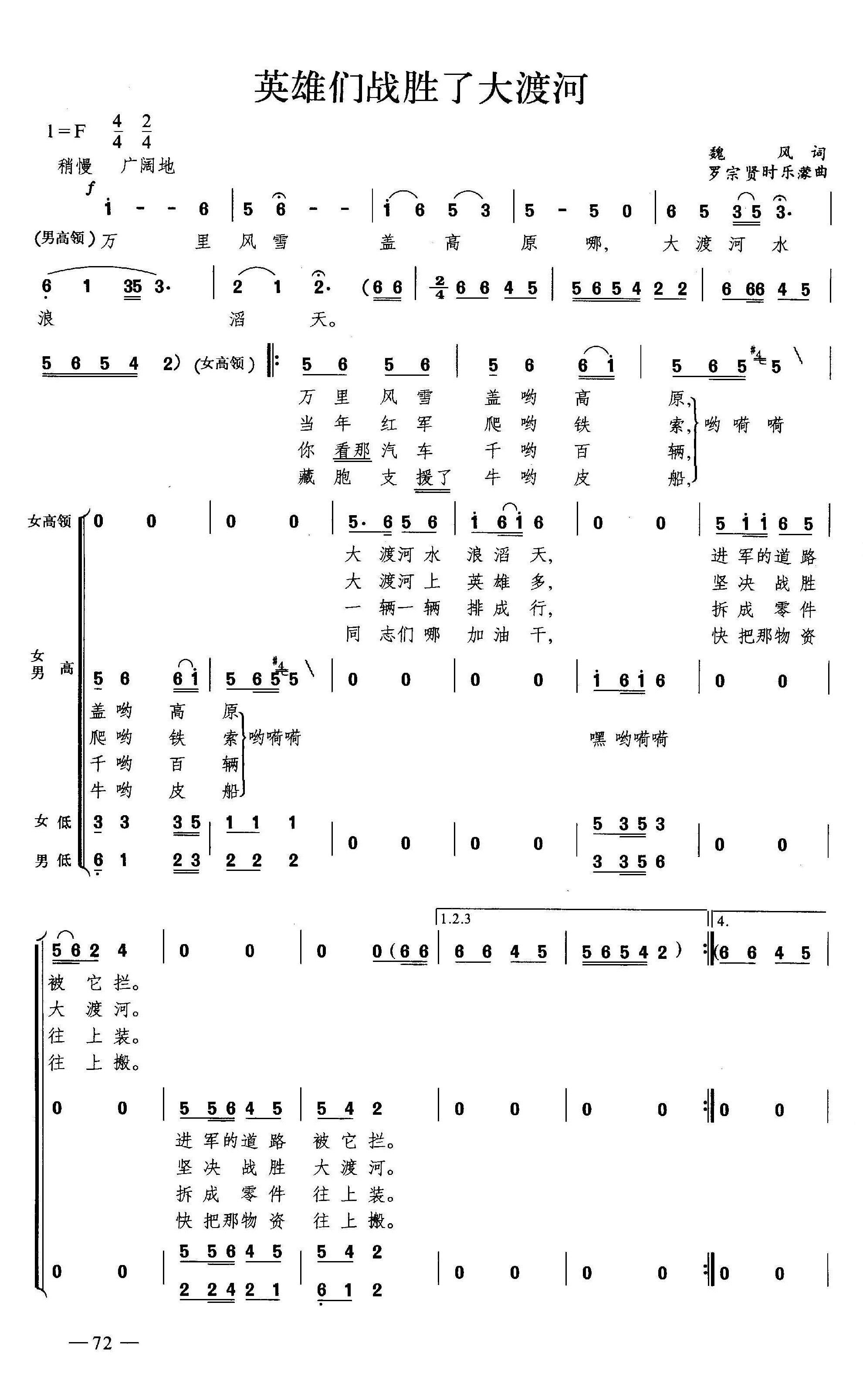 英雄们战胜了大渡河 罗宗贤 时乐濛编曲