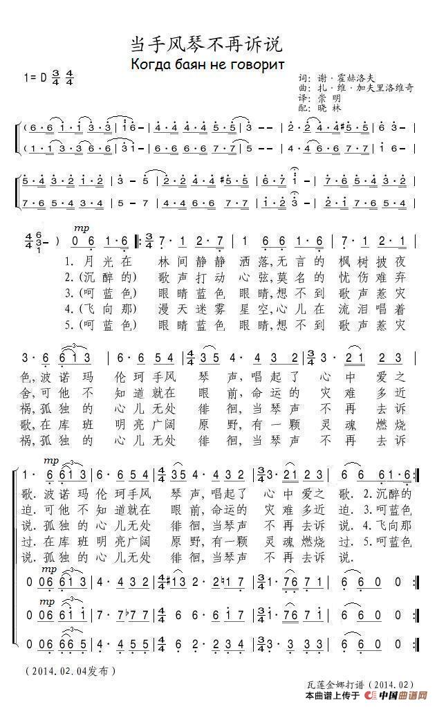 - [歌谱,手风琴谱] 俄 当手风琴不再奏响