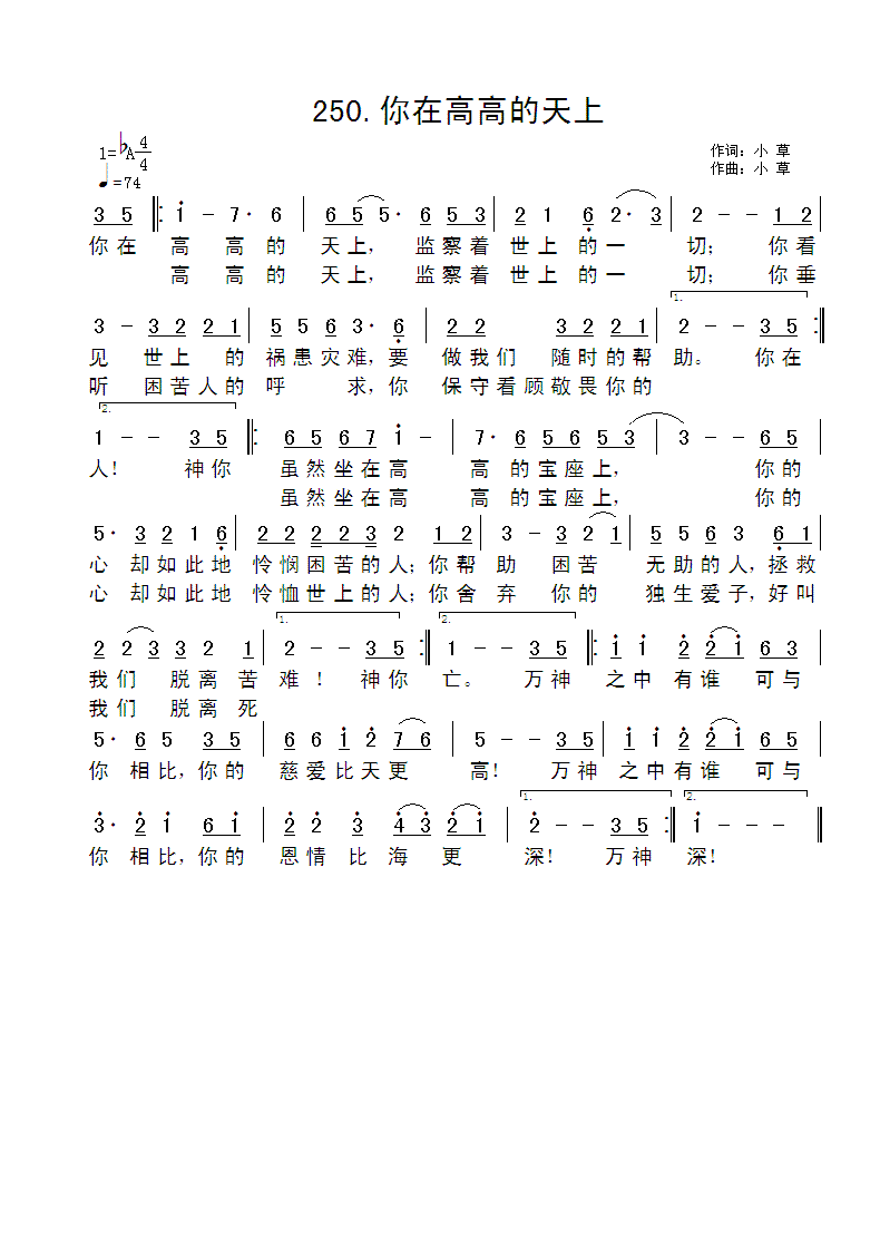 > 你在高高的天上 官方谱